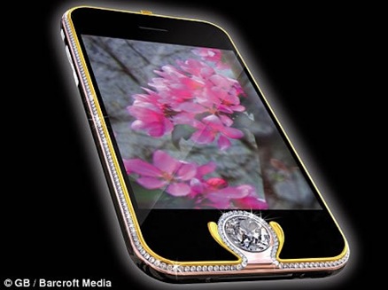 Valorizado en £ 1, 636,000 ($ 2, 517,345), el nuevo Apple iPhone 3G ‘King’s Button’ es el teléfono más lujoso hasta la fecha. Una verdadera joya, este teléfono está hecho con 24 kilates de oro amarillo, oro blanco y oro rosa. El teléfono ostenta una línea de oro blanco en el que están incrustados un total de 138 brillantes diamantes de la mejor calidad.